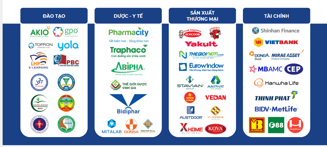 Những thương hiệu uy tín như Pharmacity, Traphaco, Eurowindow, Yakult, Shinhan Finance, BIDV MetLife, Doji, Thế giới Dược Vinh Gia, Aeon, Coopmart, Yola, Đại học Quốc gia, Viettel IDC,… là minh chứng rõ ràng cho chất lượng, sự tín nhiệm và giá trị bền vững mà CLS mang lại.